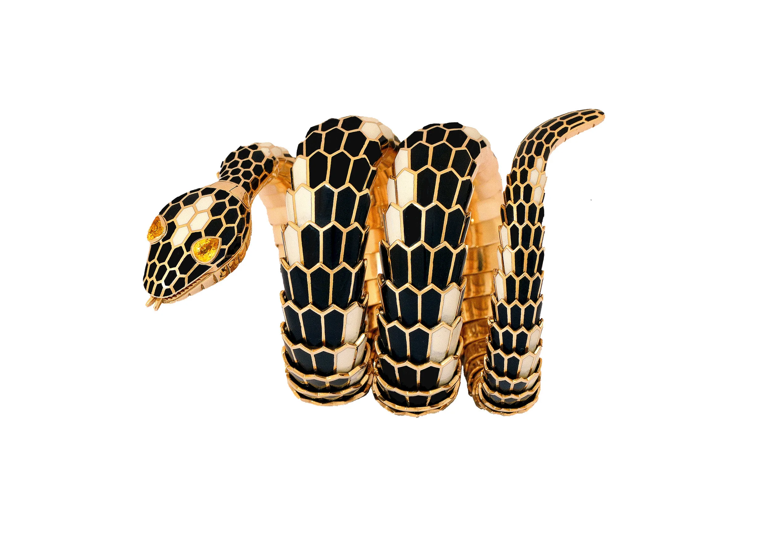 SNAKE gOLD AND ENAMEL BRACELET WITH DIAMOND EYES